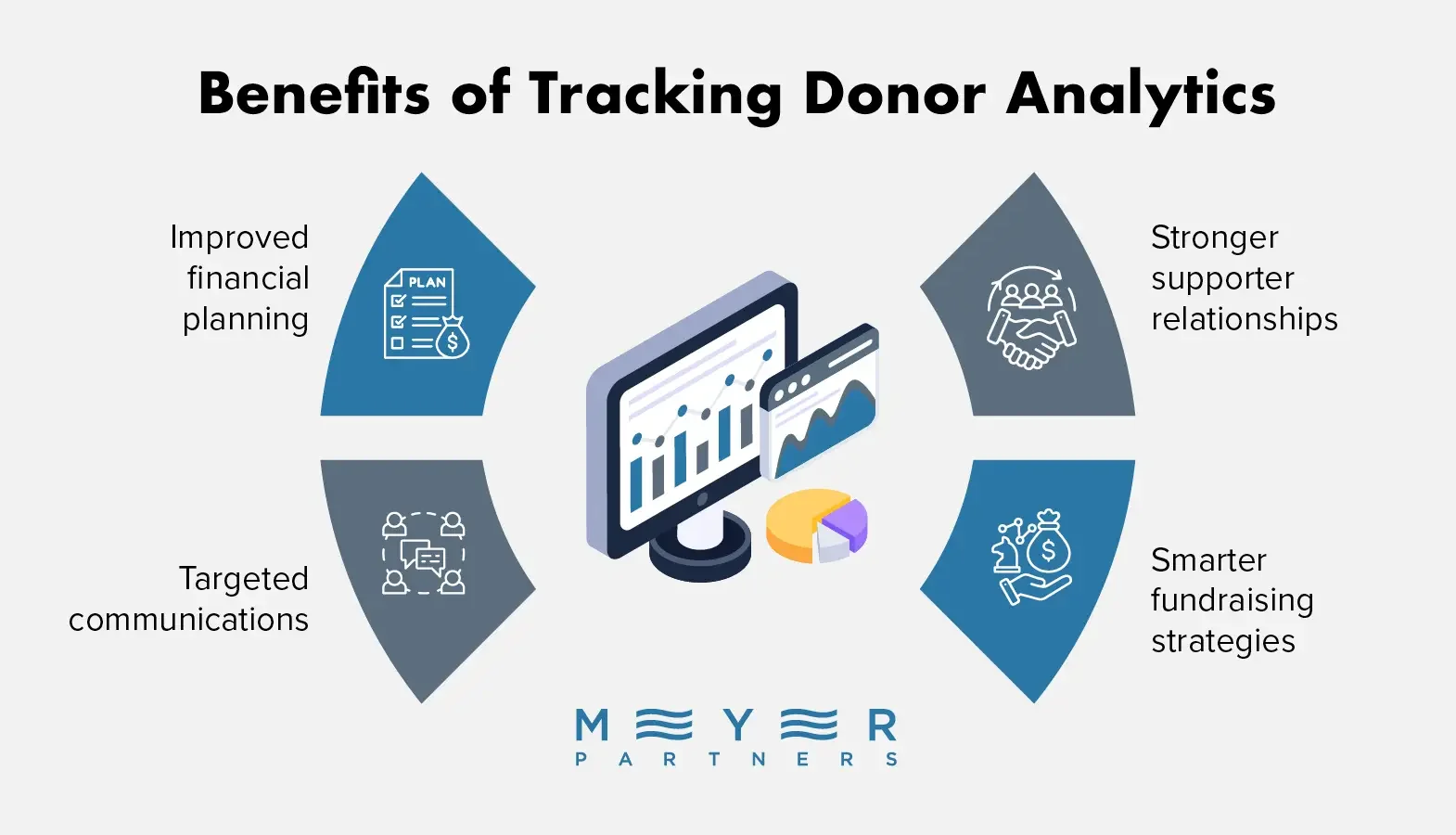 Adapt your nonprofit donor analytics strategy. As your organization evolves, revisit your tracking practices and KPIs regularly to ensure they align with current fundraising priorities and organizational goals.