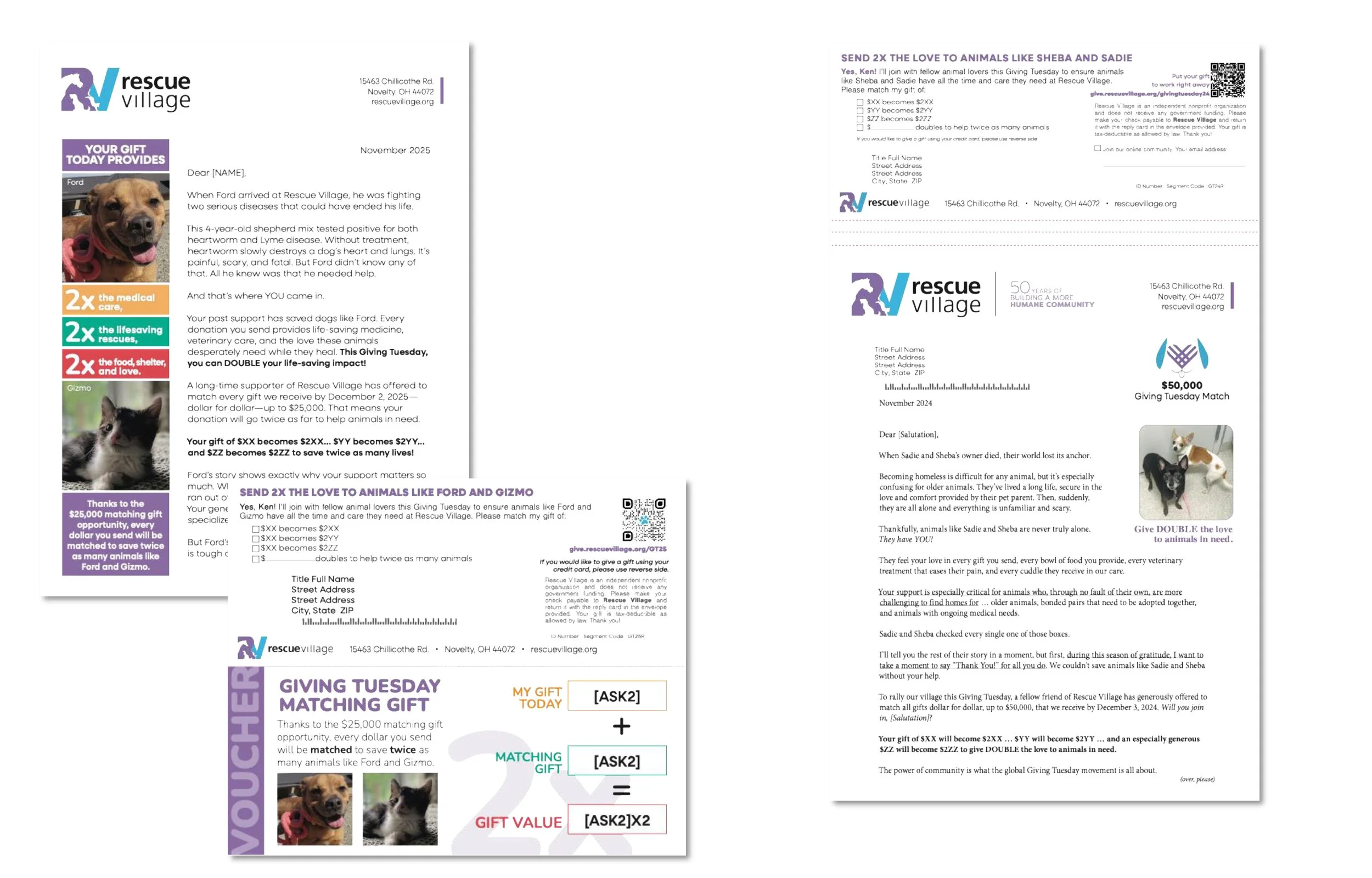 Giving Tuesday is one of the most competitive fundraising moments of the year — donors are inundated with appeals from every organization in their lives, and standing out in the mailbox is no small feat. In the past, a dependable Giving Tuesday package led with a matching gift offer highlighted in the copy and performed respectably. But the creative package was functional rather than compelling — the match offer was present in the copy, but it wasn't doing the work it could. The opportunity was clear: if we could make the 2X match feel urgent, visual, and impossible to ignore, we had room to grow both response and revenue.